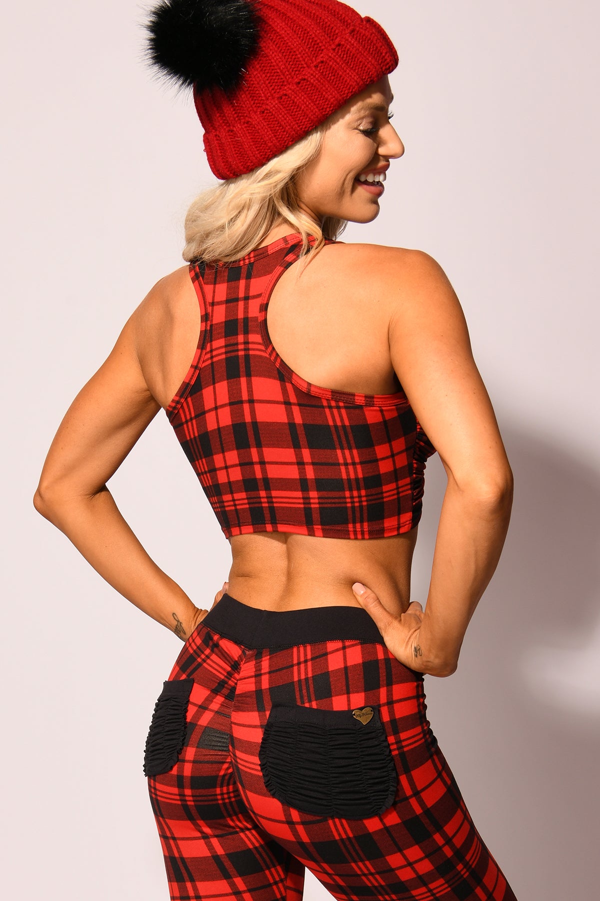 *Plaid Santa* (Ruched Tie Racer Back)