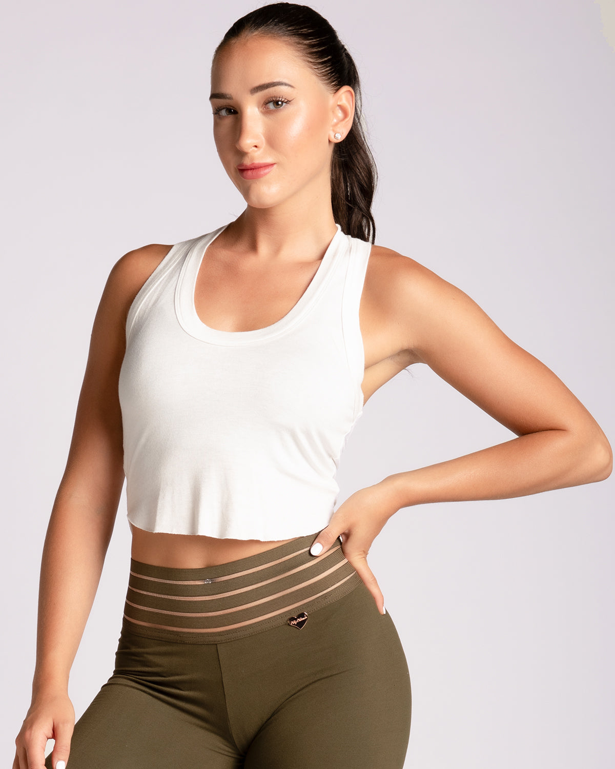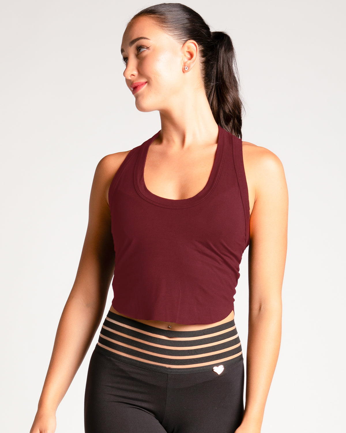 Style: Racerback Curved Hem Crop Tank