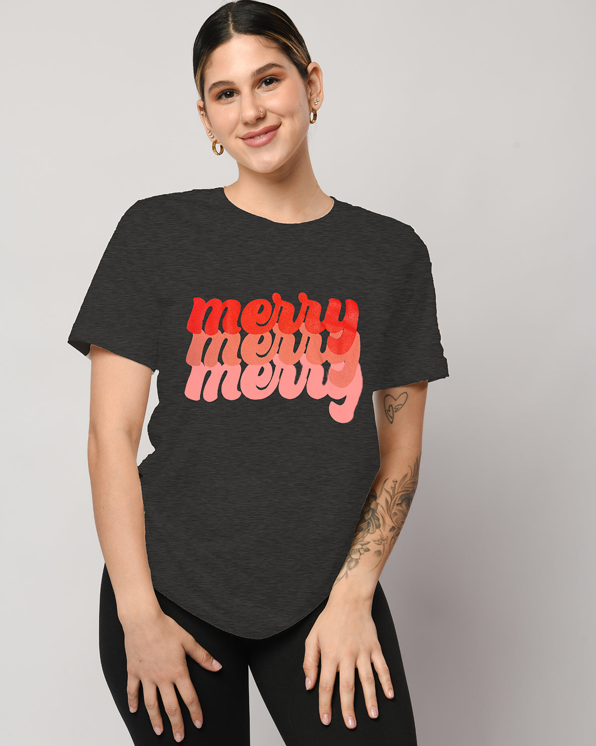 So are we! Liven up your day with our Dark Charcoal Tee with 3 colors of Merry :)
