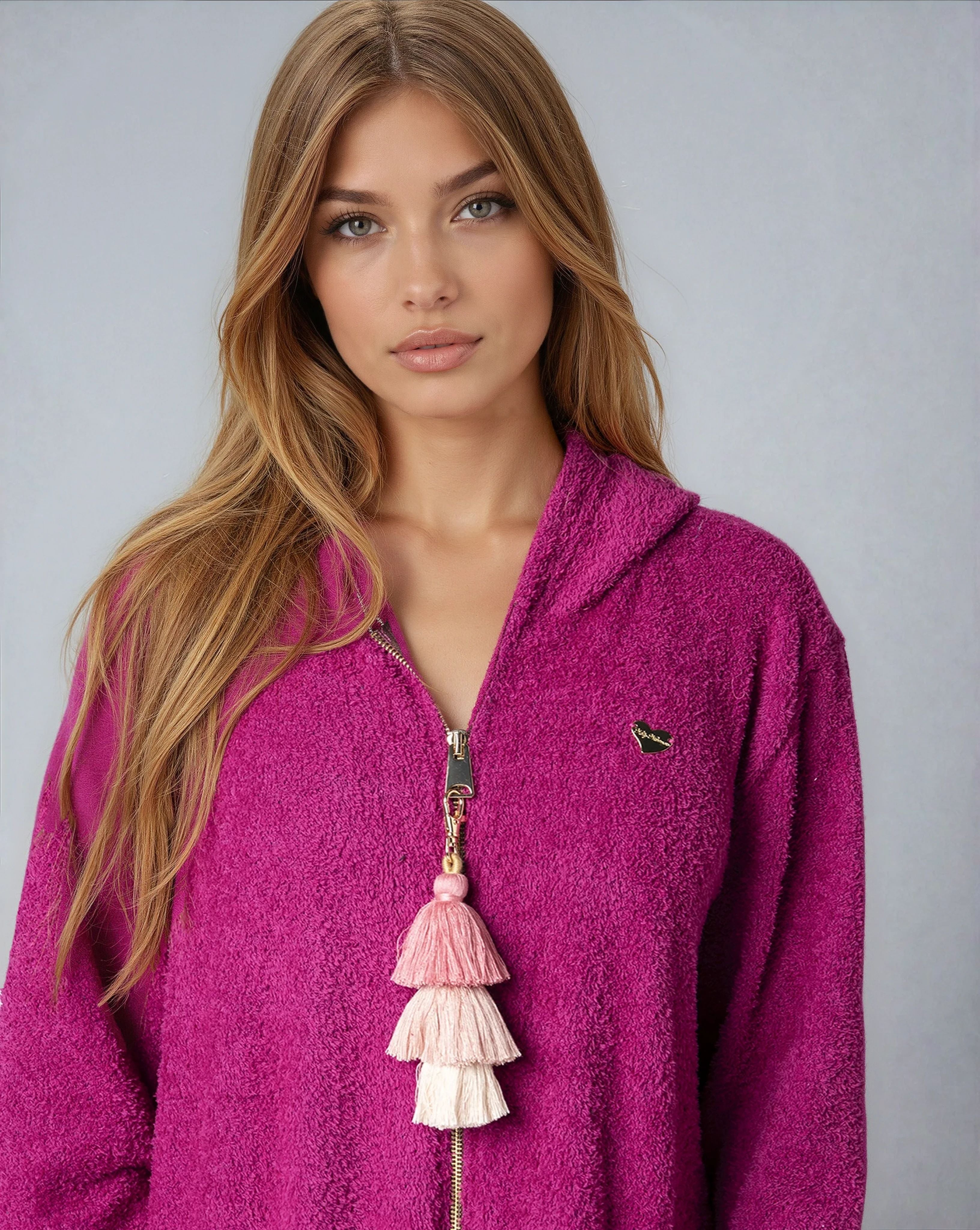 • Hardware: Center Front Gold Zipper & Removable 3 Tone Tassel